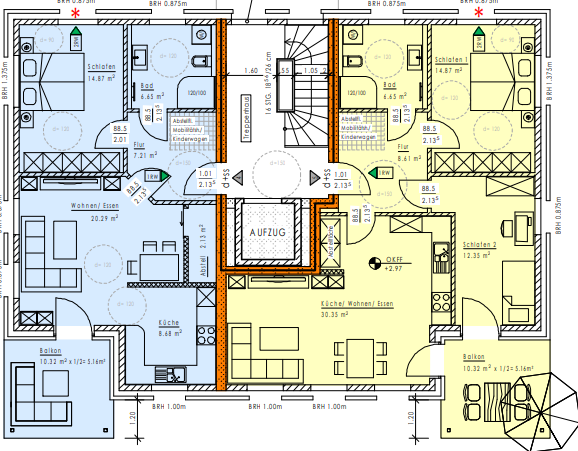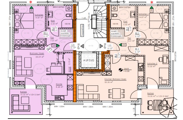 Das Mehrfamilienhaus bietet 6 Wohnungen mit 65 m2 bis 110 m2 Wohnfläche. Die Doppelhaushälfte verfügt über 142,95 m2 Wohnfläche. Für jede Wohnung sind ein bis zwei Stellplätze vorgesehen. Jede einzelne Wohnung zeichnet sich durch eine moderne Ausstattung aus. Fußbodenheizung und elektrische Rollläden gehören zur Standardausstattung. Die Wohnungen erfüllen zudem den KfW 40-EE Standard und gewährleisten somit energieeffizientes Wohnen. Die Beheizung erfolgt mittels einer fortschrittlichen Luftwärmepumpe.